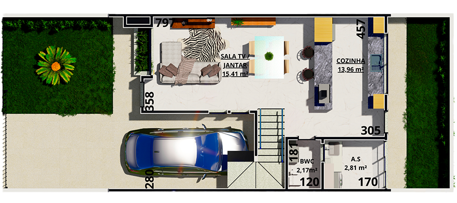 Focado em proporcionar mais liberdade e uma transição fluída entre os ambientes, visando criar espaços interconectados.